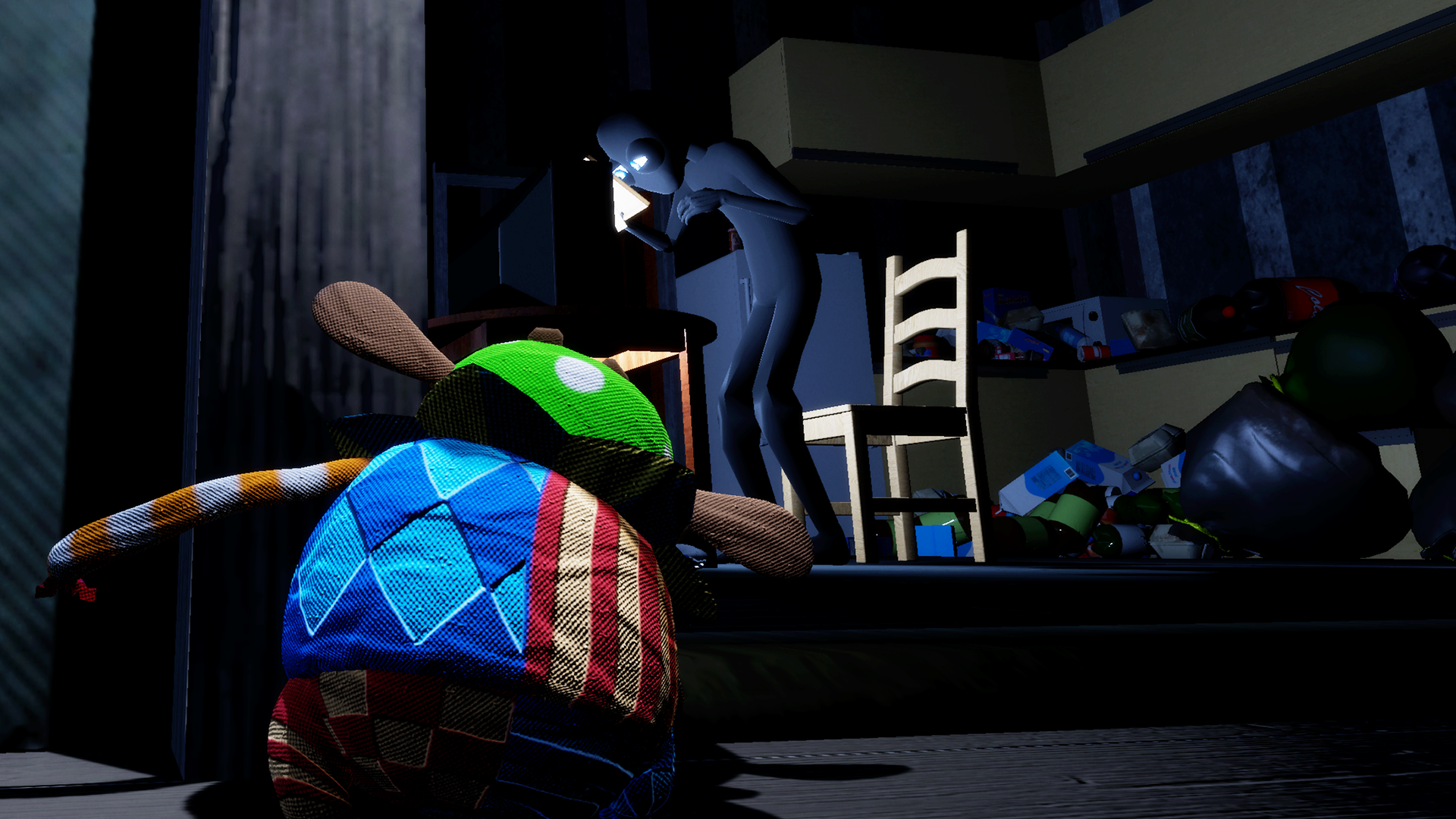 本作は、玩具ぬいぐるみが主人公のホラーパズルアクションゲームです。舞台は、精神的に壊れてしまった持ち主が住む、ひどく散らかった部屋。プレイヤーは「玩具の3つの掟」という絶対のルールに縛られながら、部屋を探索し、持ち主のもとに「思い出の品」を届けていきます。