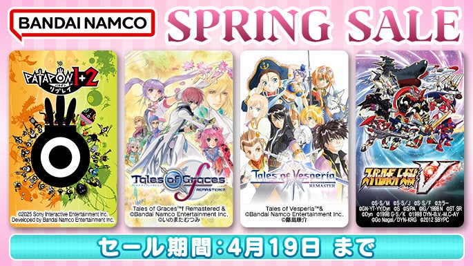 そのほか『パタポン1+2 リプレイ』、『テイルズ オブ エクシリア リマスター』など、人気タイトルを最大75%OFFのお得な価格でお楽しみいただける期間限定のセールとなっております。