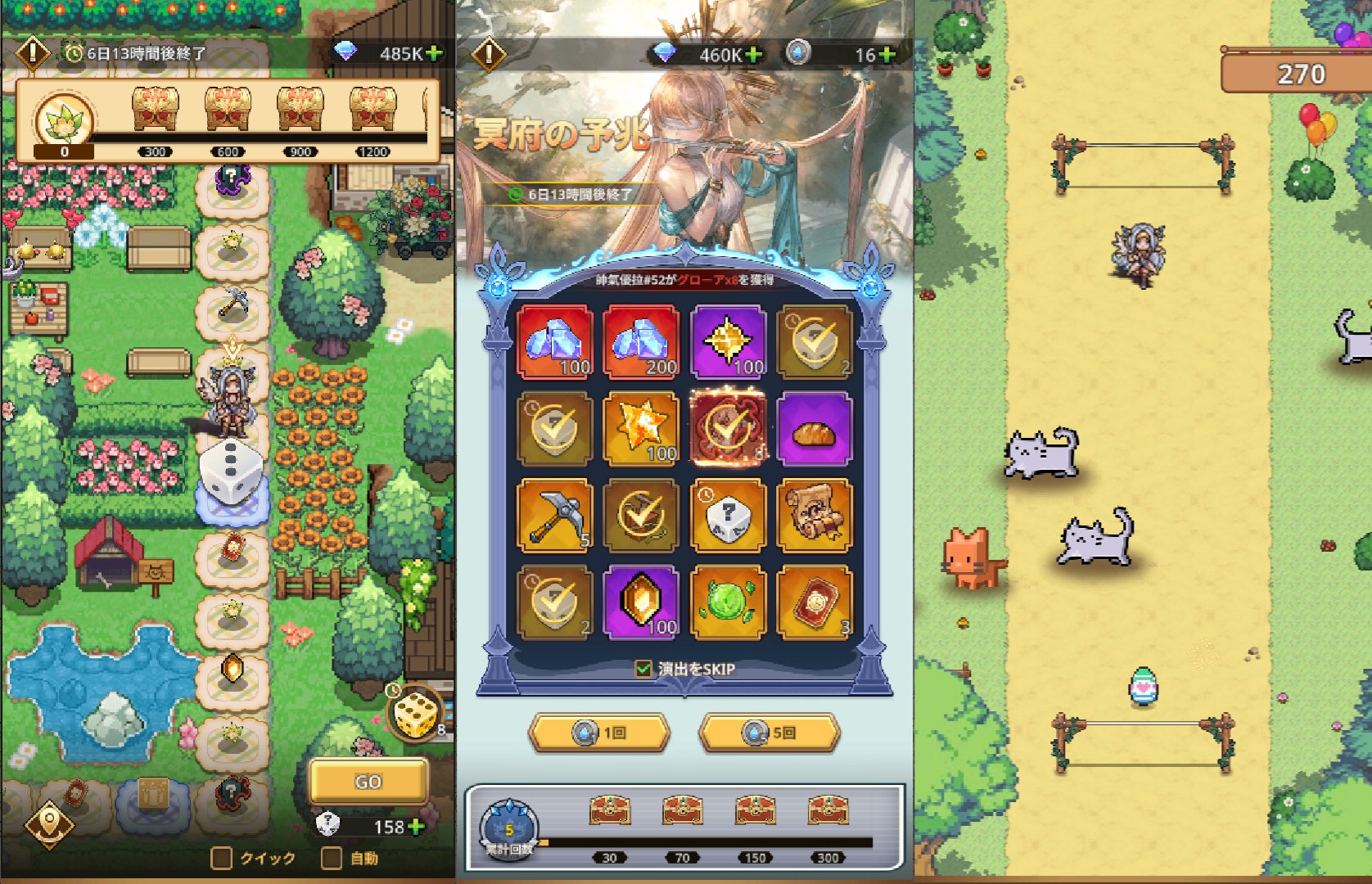春の景色を描いた幻想的なパズルコンテンツ。欠片を集めてラインを揃え、絵巻を完成させましょう。全体のパズルを解き明かすことで「レアコスチューム選択箱」が解放されます。
