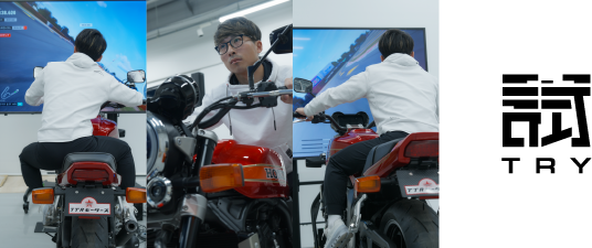 モーターサイクルの楽しさと世界観を、初めての方にも直感的に伝えるために、ヤマハ発動機と共同開発した体感シミュレーター。