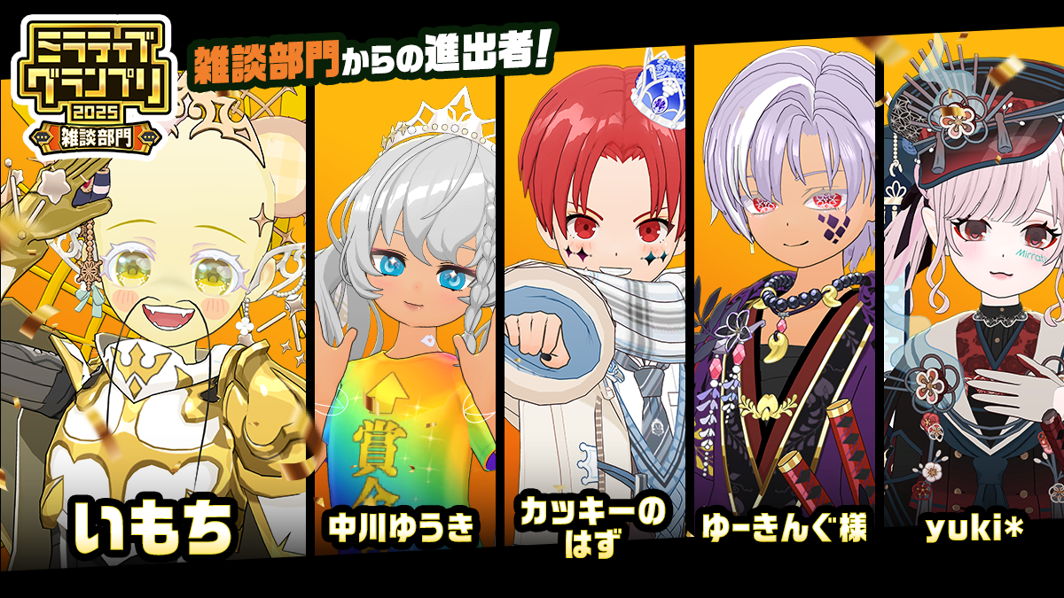 『ミラティブグランプリ2025』は、配信活動の“その先”へつながり、努力が“かたち”になるだけでなく、“未来”にもつながる特別な体験に満ちています。2025年4月から始まったシーズンを戦い抜き、ついにミラティブの頂点となるグランドチャンピオンが決定します。栄冠が決まるその瞬間に、ぜひご注目ください。