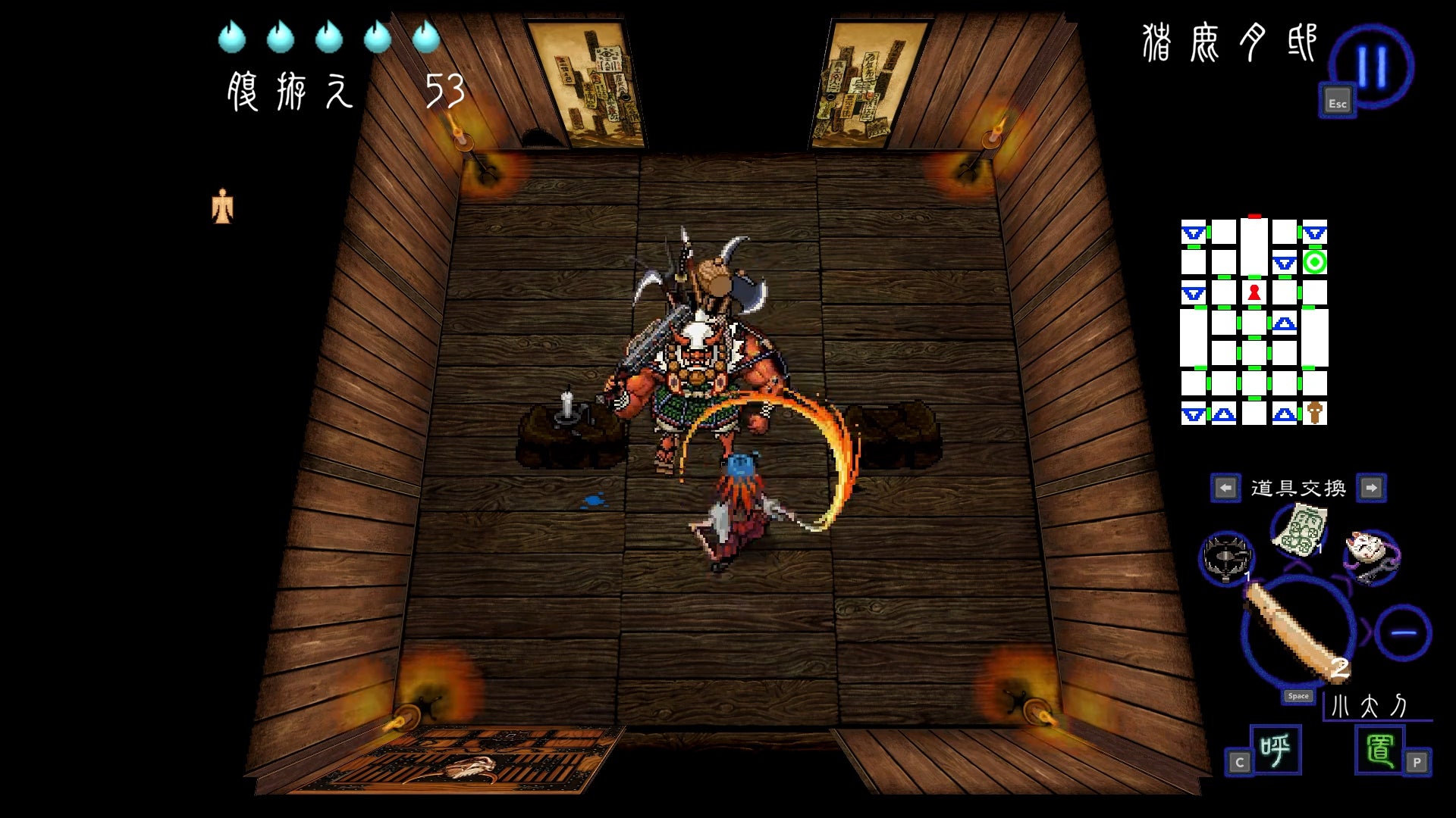 【禊(みそぎ)】ランダム生成される小規模の屋敷からの脱出を目指すローグライクモード。最短数分でクリアでき、脱出ゲームのようなノリで気軽に楽しめます。