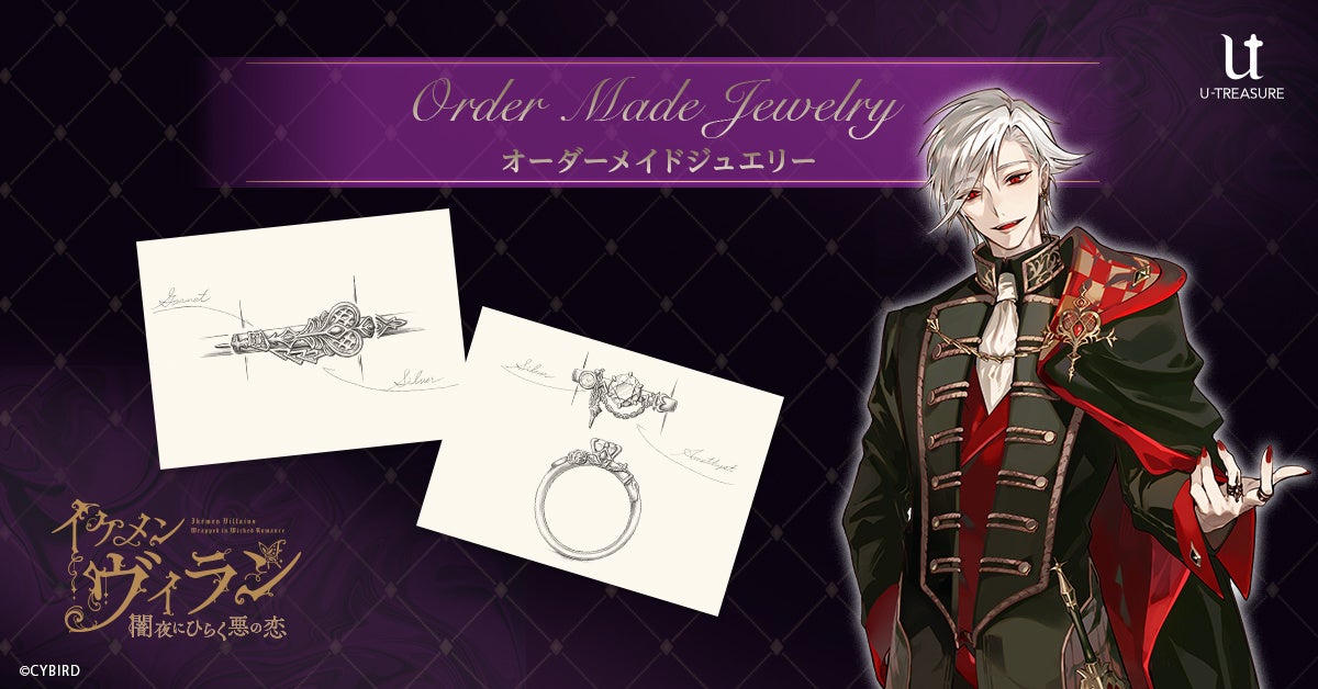 株式会社ユートレジャー(本社:東京都新宿区、代表取締役社長:青木 興一、株式会社ケイ・ウノの連結子会社)は、株式会社サイバード(本社:東京都品川区、代表取締役社長 兼 CEO 長嶋 貴之)の全世界でのシリーズ累計会員数4,500万人を誇る大人気恋愛ゲーム「イケメンシリーズ」の人気作『イケメンヴィラン 闇夜にひらく悪の恋』のジュエリーのオーダーメイドサービスを2026年3月26日(木)より開始します。ユートレジャーオンラインショップ、ユートレジャーコンセプトストア池袋・心斎橋にて取り扱います。