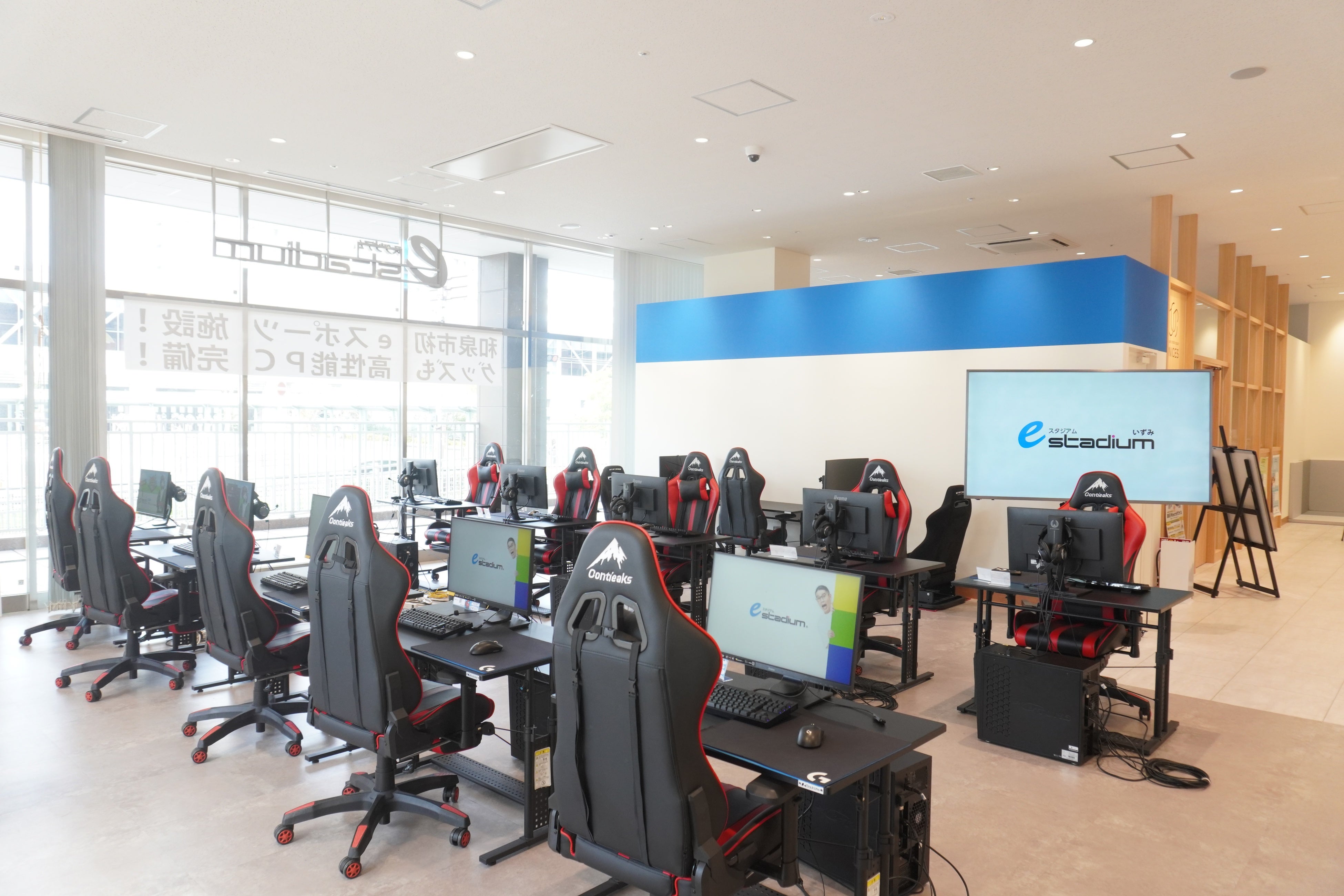 大阪市和泉市(南海泉北線「和泉中央駅」前)に位置するeスポーツ施設「eスタジアムいずみ」は、地域の皆様が、eスポーツを健全かつ健康的に親しむことや、プレイヤーの活躍を地域とともに支援する施設です。
