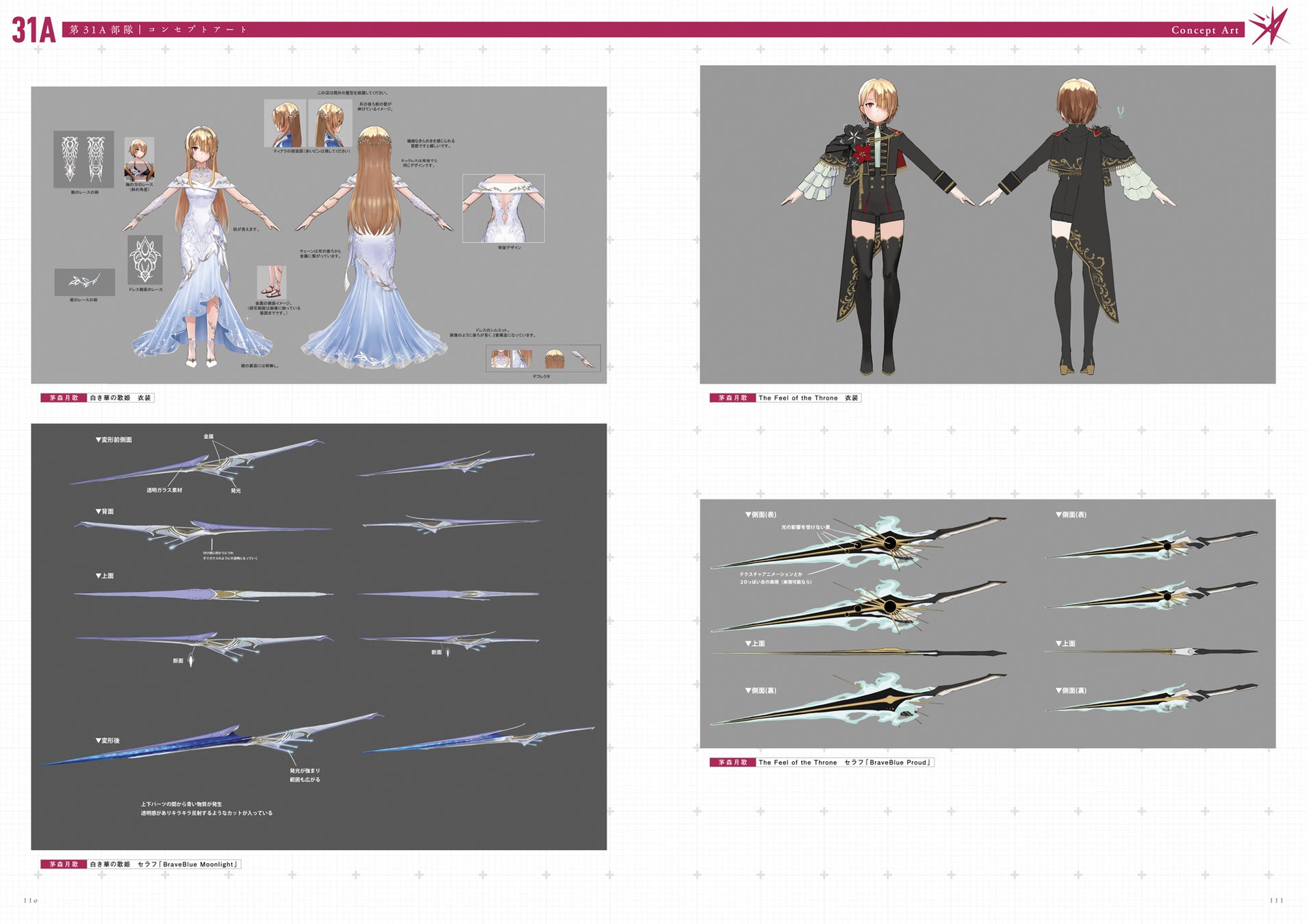SS<レゾナンス>を含むスタイルイラストと設定画を掲載。衣装や武器の細部を見ることができます。