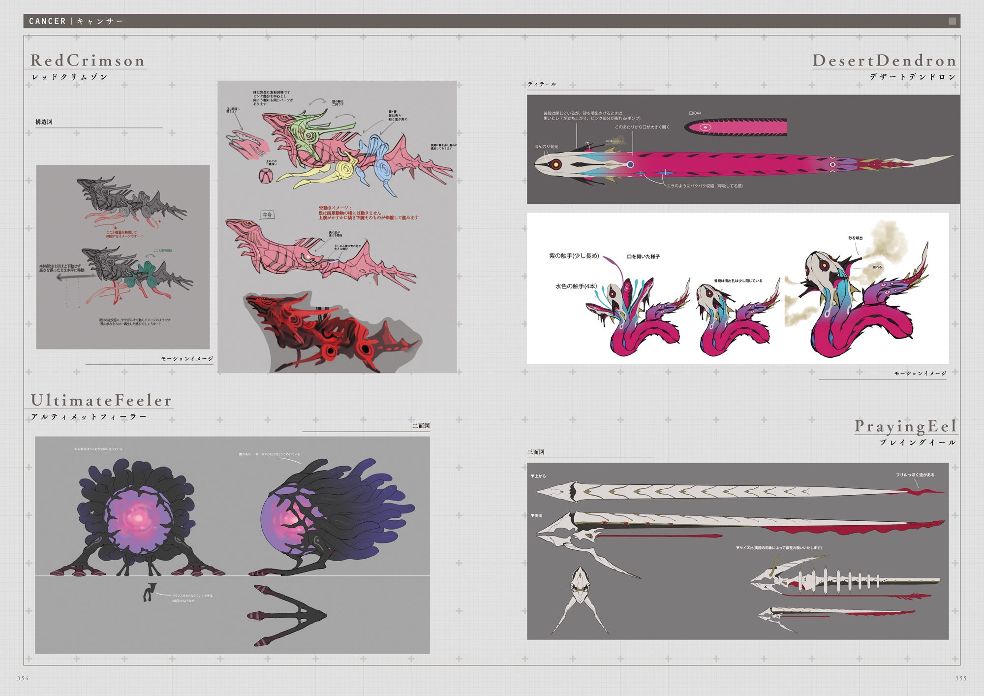 書初公開となる、ボスキャンサーの設定画を掲載。初期イメージや攻撃モーションを確認できます。