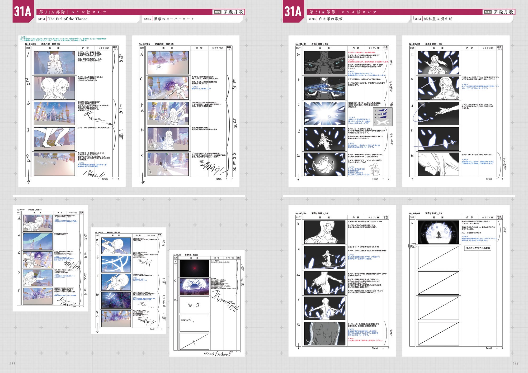 各キャラクターのスキルの絵コンテを掲載。スキル発動時の動きやエフェクトの設定が見どころです。