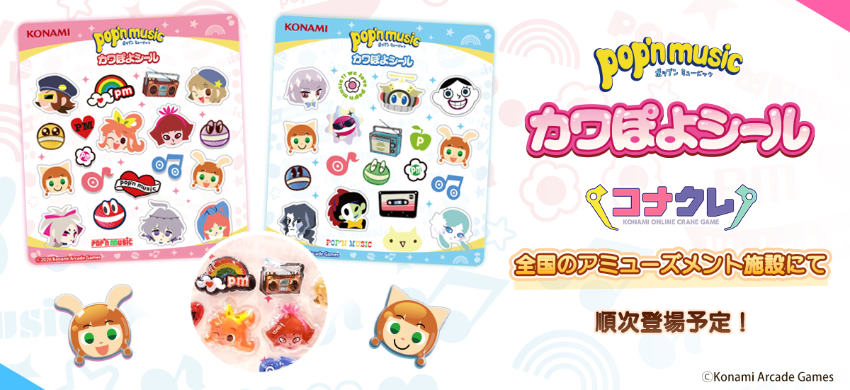 株式会社コナミアーケードゲームスは、アミューズメント景品「pop’n music カワぽよシール」が3月26日(木)から全国のアミューズメント施設に登場することをお知らせします。
