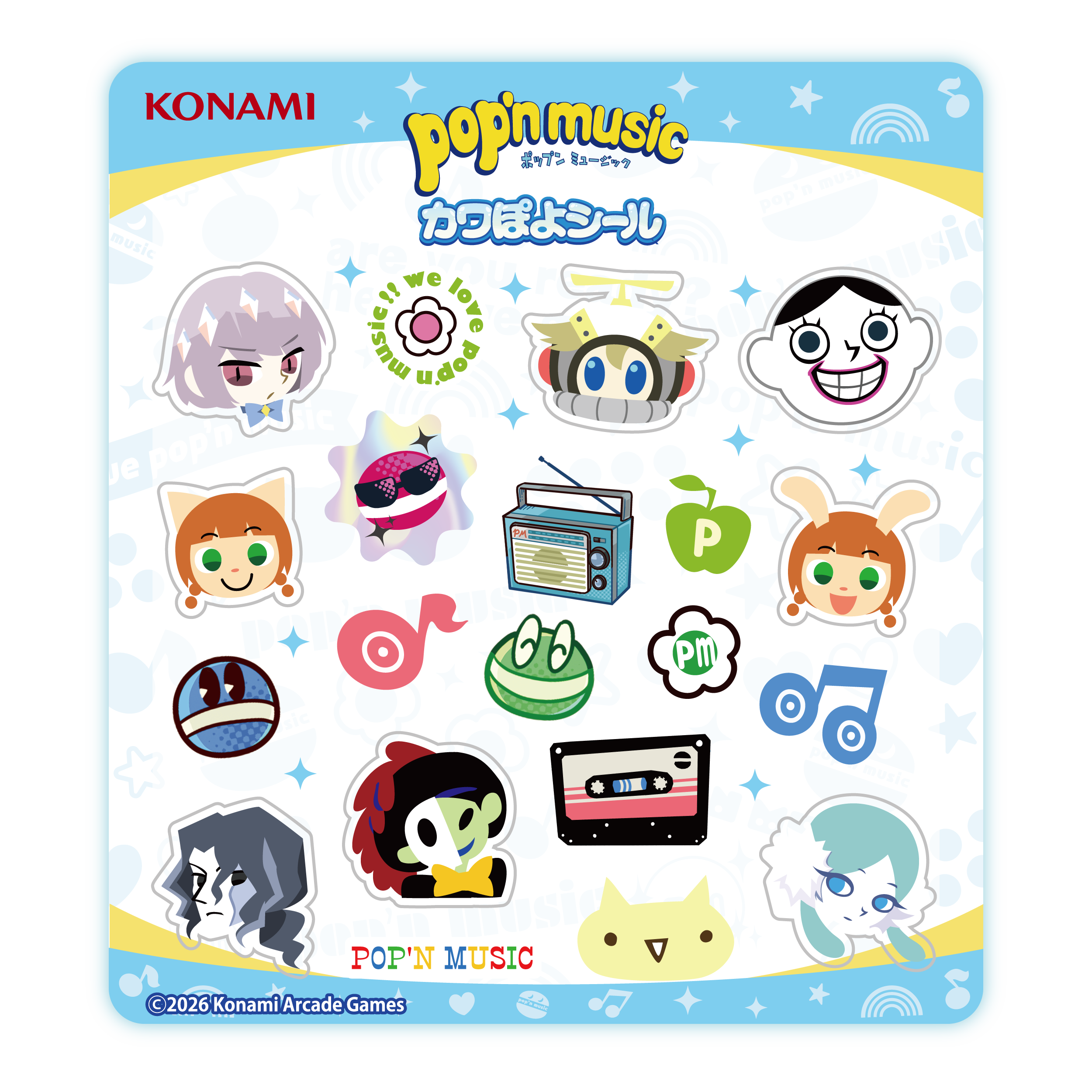 「pop’n music」シリーズのキャラクターたちがぽよっとかわいい立体シールになって登場!