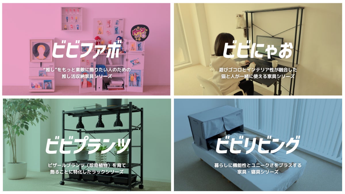 オタ活をもっと楽しく快適にする”推し棚”シリーズ【ビビファボ】、猫と人がいっしょに使える”猫家具”シリーズ【ビビにゃお】の最新人気アイテムを対象に、アニメイト通販での取り扱い開始を祝した最大20%OFFの衝撃価格セールと、SNSを推しへの愛で染め上げる豪華Xキャンペーンを展開します。