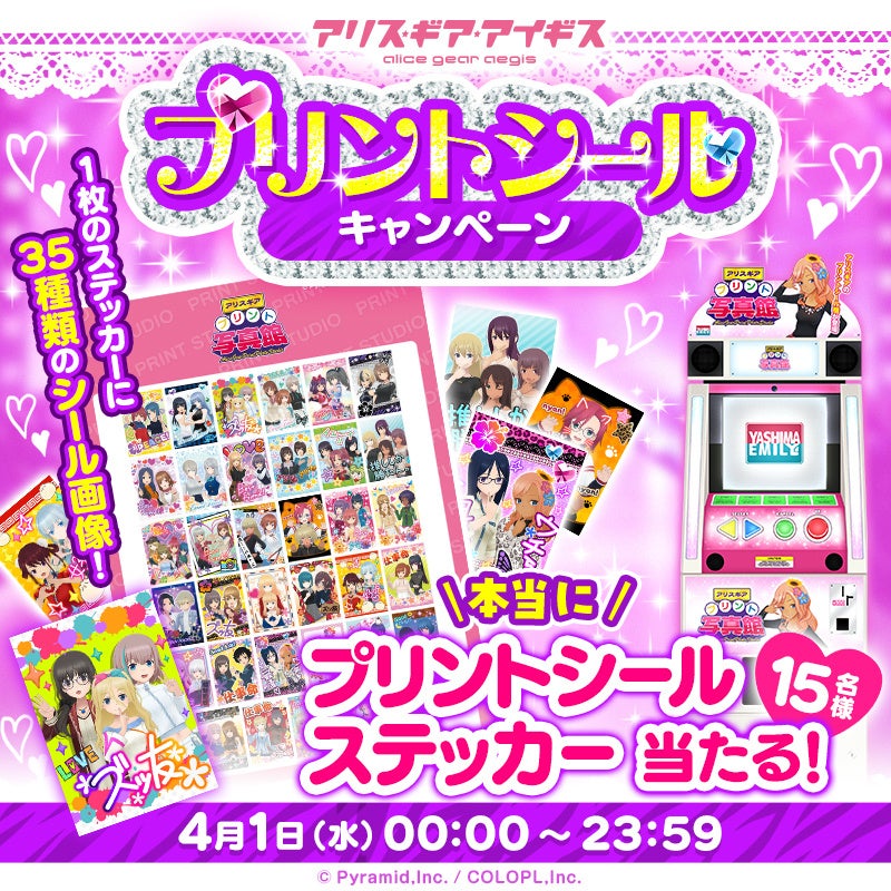本日2026年4月1日(水)より、『アリス・ギア・アイギス』プリントシール機「アリスギアプリント写真館」の展開が決定しました。