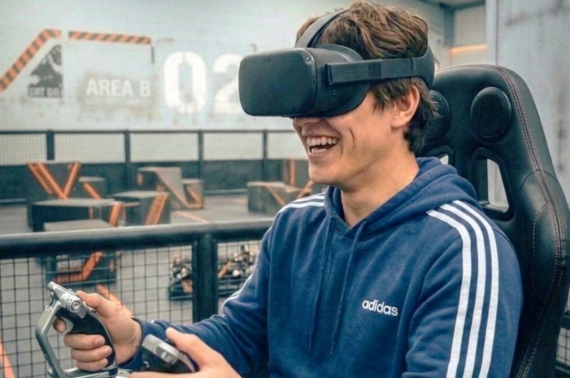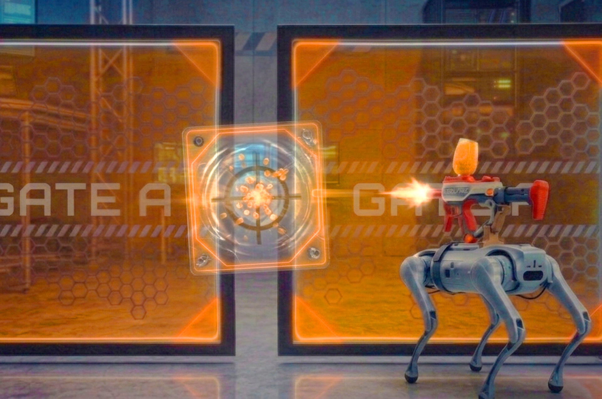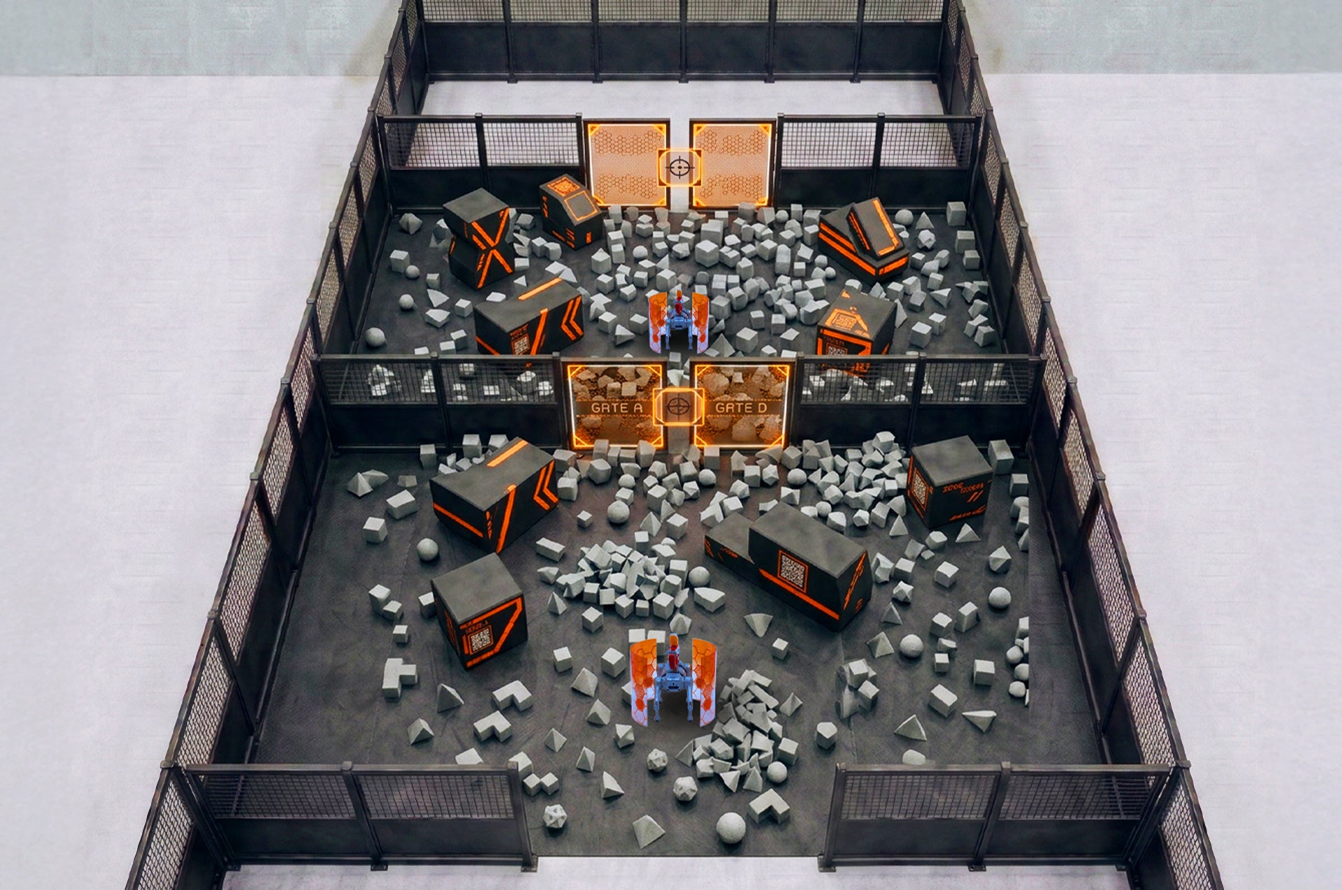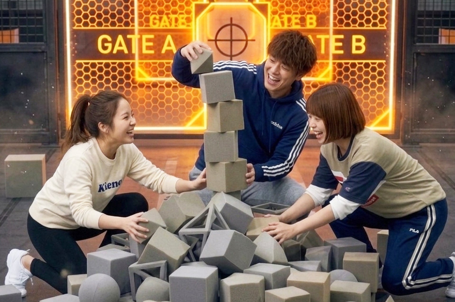 XiGAのコンセプトは、「アナログな物理」と「デジタルなロボティクス」が衝突する非対称型PvP体験。VRゴーグルを装着してモーションチェアに搭乗し、4脚ロボット「Unitree GO2」を実際に操縦。ナーフ銃を装備したロボットで、参加者がその場でスポンジブロックを積み上げた「物理要塞」を突破しにいきます。