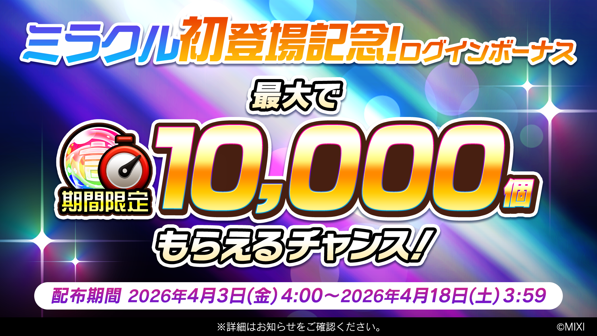 ・配布内訳:1日目⇒期間限定虹のコトダマ 1,000個