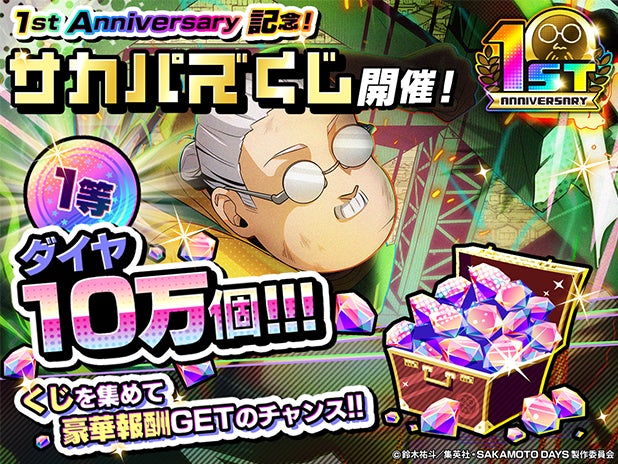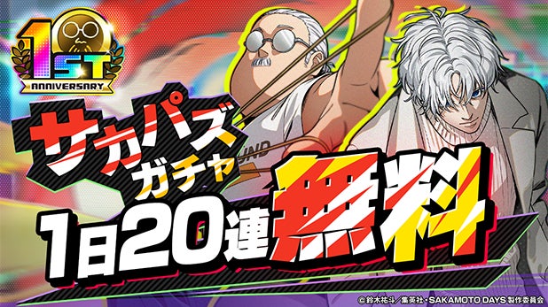 株式会社GOODROID(本社:東京都目黒区、代表取締役社長:松田和彬)は、企画・制作・開発・運営を行うスマートフォン向けゲームアプリ『SAKAMOTO DAYS デンジャラスパズル』(以下、『サカパズ』)で、4月2日(木)15時より1周年キャンペーンを開始いたしました。