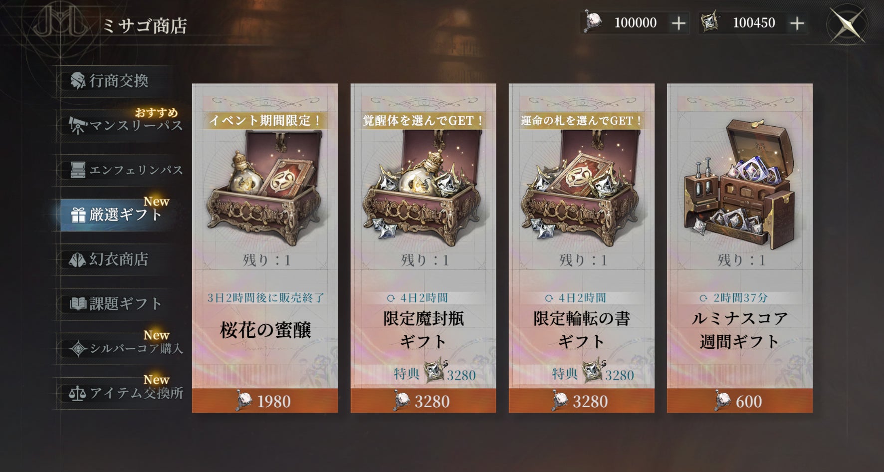 アップデートを記念して、お好きな常設覚醒体と常設運命の札を選べる特別な厳選ギフト「桜花の密醸」が登場!