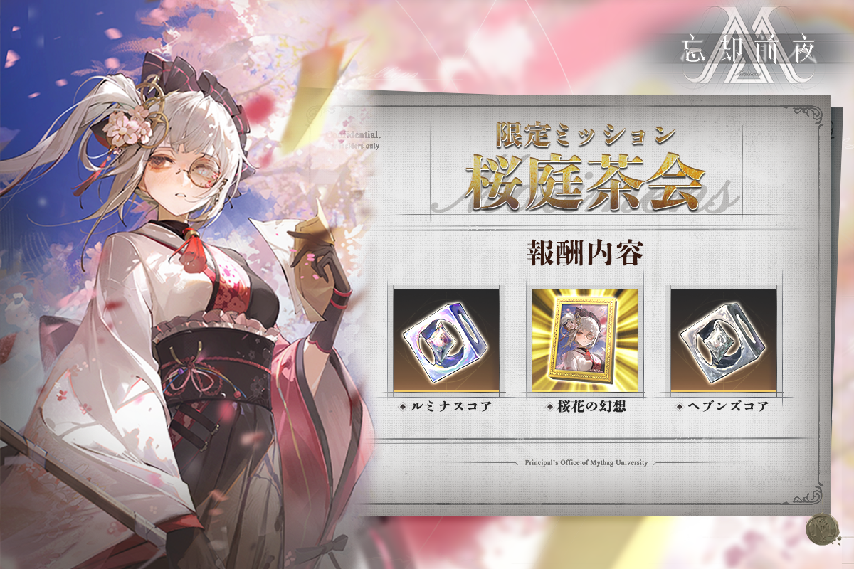 さらに、本アップデートでは、調査第8章「終末交響曲」や限定ミッション「桜庭茶会」など、多数の特別コンテンツをお楽しみいただけます。
