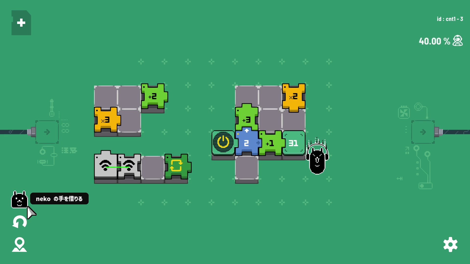電気を操る不思議な「超電導生命体 neko」と共に回路を再構築し、配電盤の修理にとりかかろう!