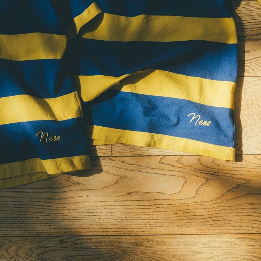 Tシャツの裾にはアクセントとして、古着でおなじみのチェーンステッチでそれぞれの少年の名前を刺繍。また、ネスのボーダーTシャツは、かねてから要望のあったキッズサイズをつくりました。
