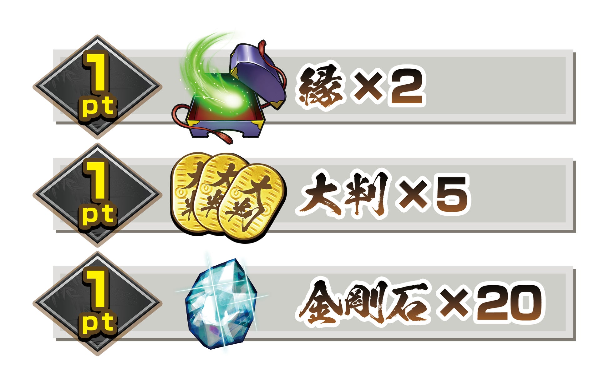 縁×2、大判×5、金剛石×20