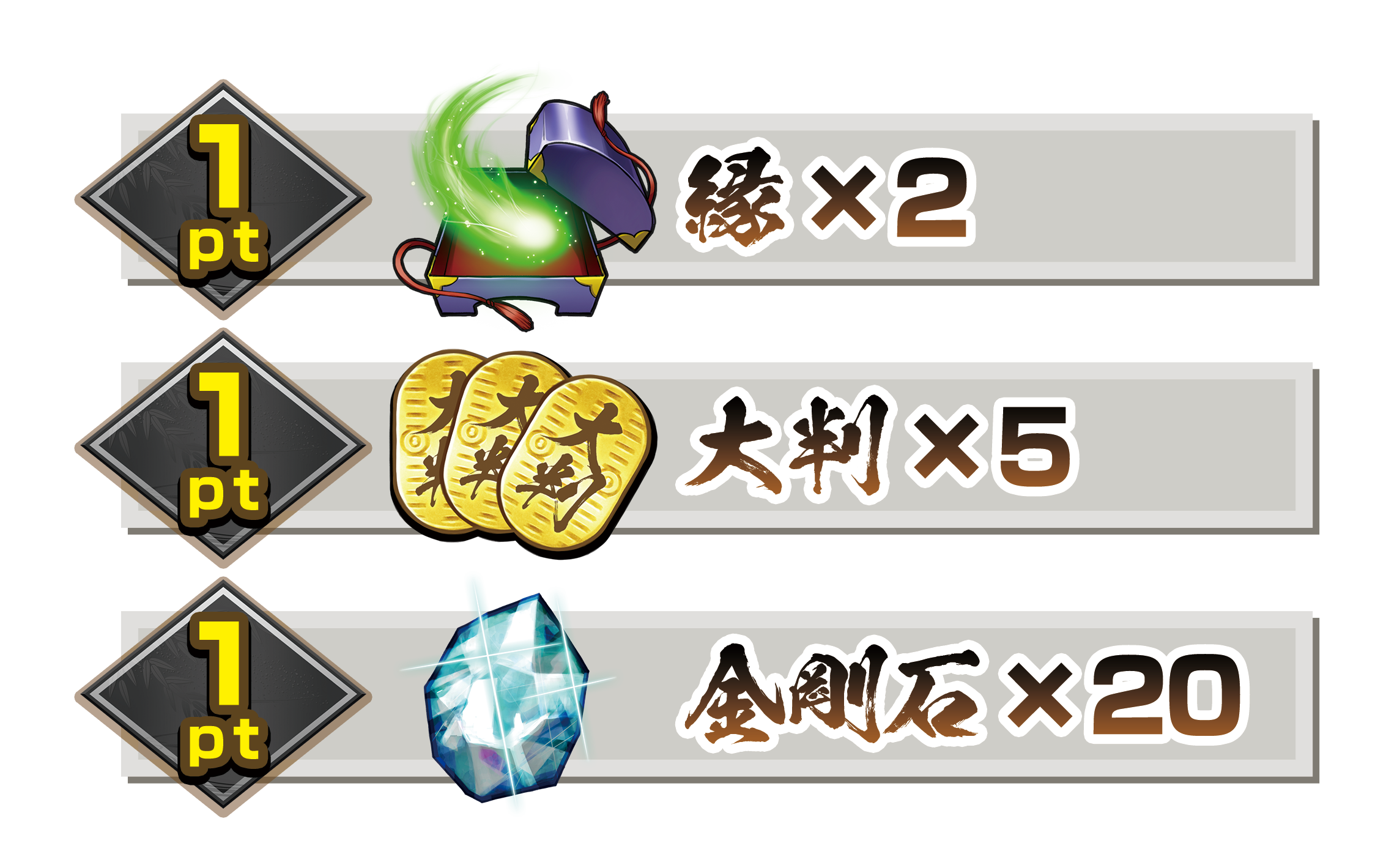 縁×2、大判×5、金剛石×20