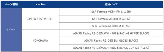 ※車種ごとにパーツの追加内容が異なります。