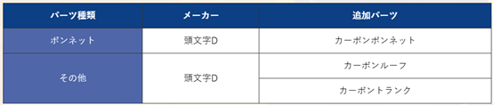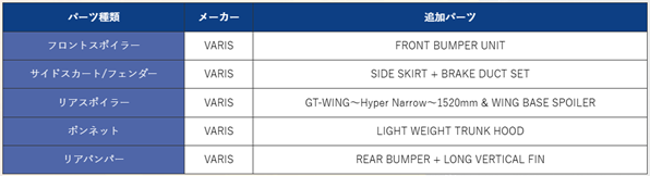 ※車種ごとにパーツの追加内容が異なります。