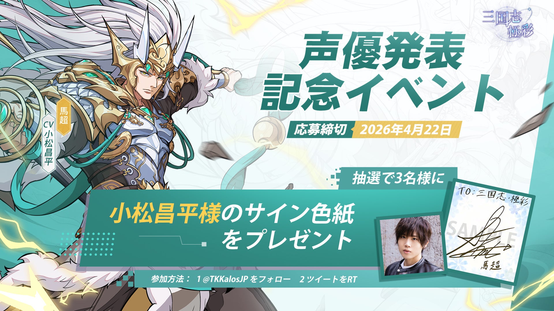 Supernova Overseas Limitedが開発・運営するスマートフォン向けゲーム『三国志・極彩』は、事前登録者数50万人を突破し、2026年4月16日(木)に正式サービス開始が決定いたしました。あわせて、豪華声優陣の全容解禁および人気IP「うさぎ100% 武士語」とのコラボ開催も決定しております。