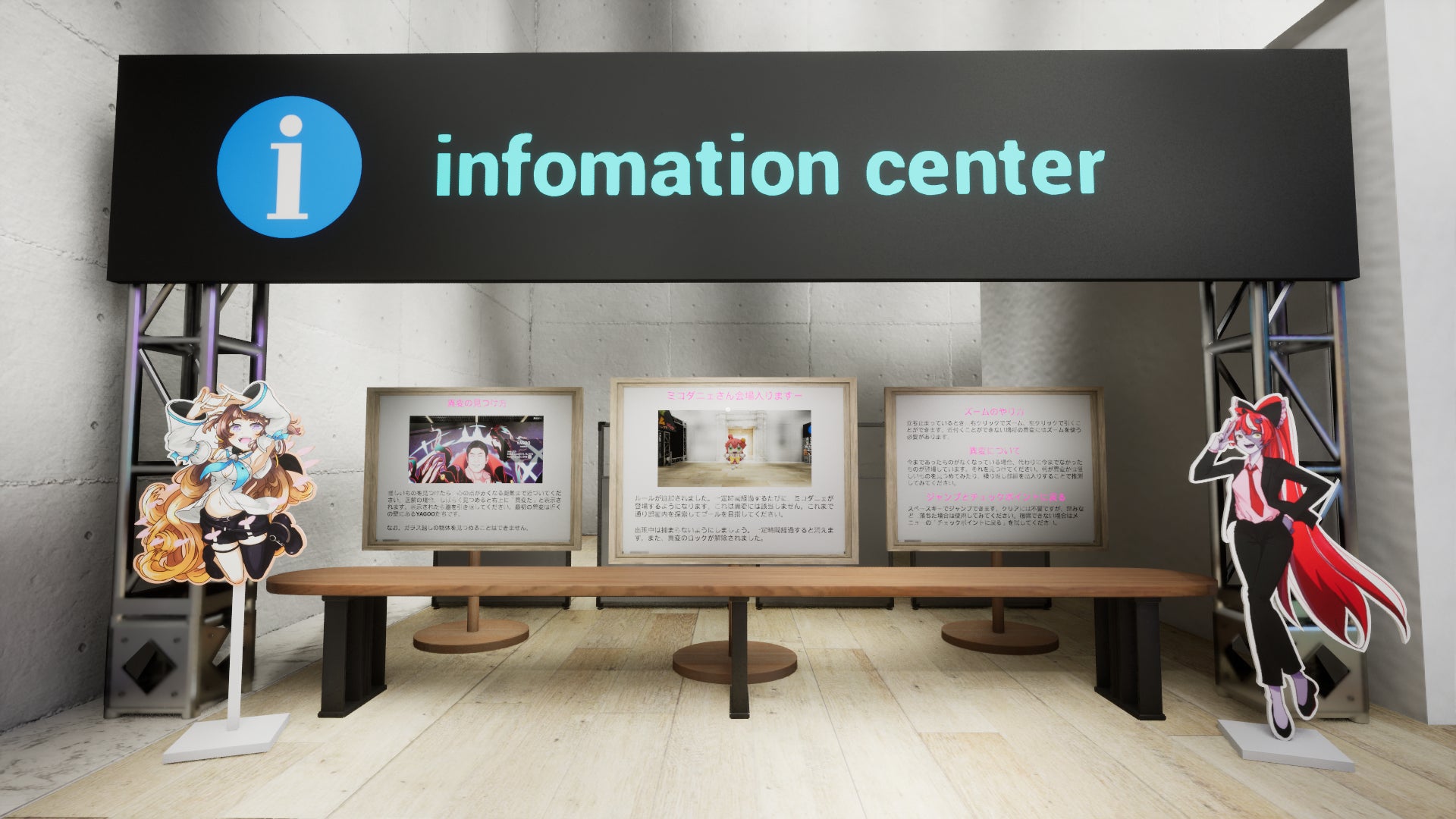 本作の舞台となる展示会場は、ホロライブプロダクションの開催する「EXPO」をモチーフに作られており、会場内には所属タレント90名以上のファンアートがオブジェクトとして数多く展示されています。