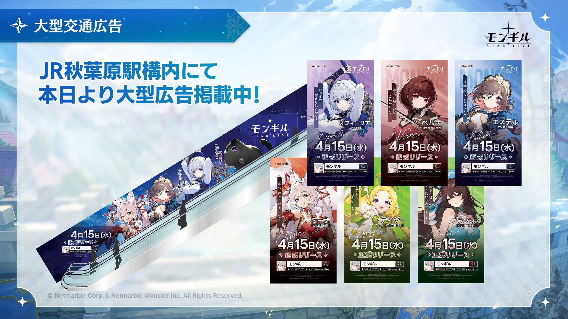 『モンギル:STAR DIVE』は、4月15日(水)の正式リリースに向けて、本日4月13日(月)20時より「リリース直前生放送」の配信を実施いたします。