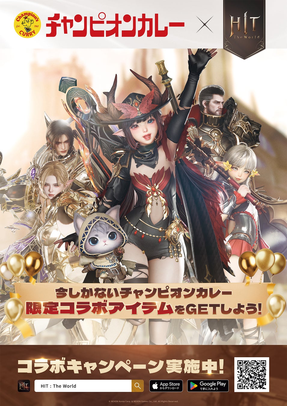 オンラインゲームの制作及び運用を行う株式会社ネクソン(本社:東京都港区、代表取締役社長:李 政憲/イ・ジョンホン、東証:3659、以下 ネクソン)は、PCおよびモバイル向けに提供中のMMORPG『HIT : The World』において、2026年4月15日(水)より、株式会社チャンピオンカレー(本社:石川県野々市市、代表取締役社長:中村洋介、以下 チャンピオンカレー)とのコラボレーションキャンペーンを開催いたします。