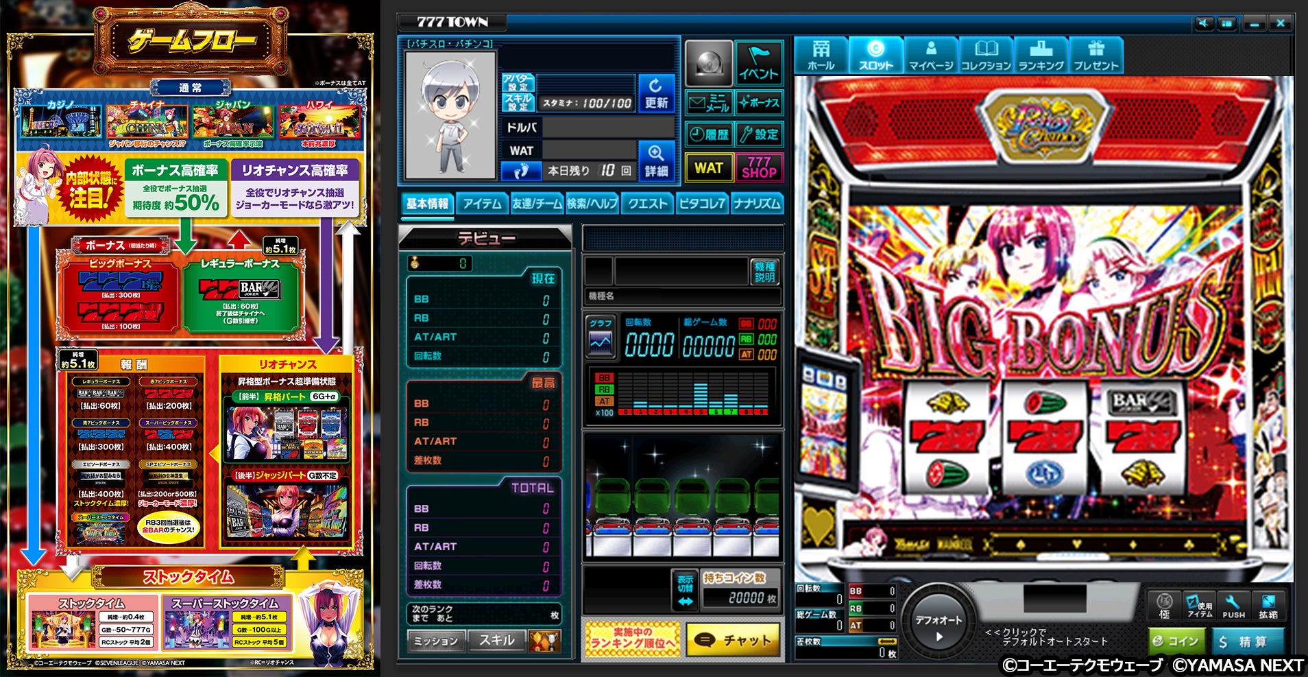 最高設定で遊技できる機能や、パチンコ・パチスロに登場するキャラクターのアバター、