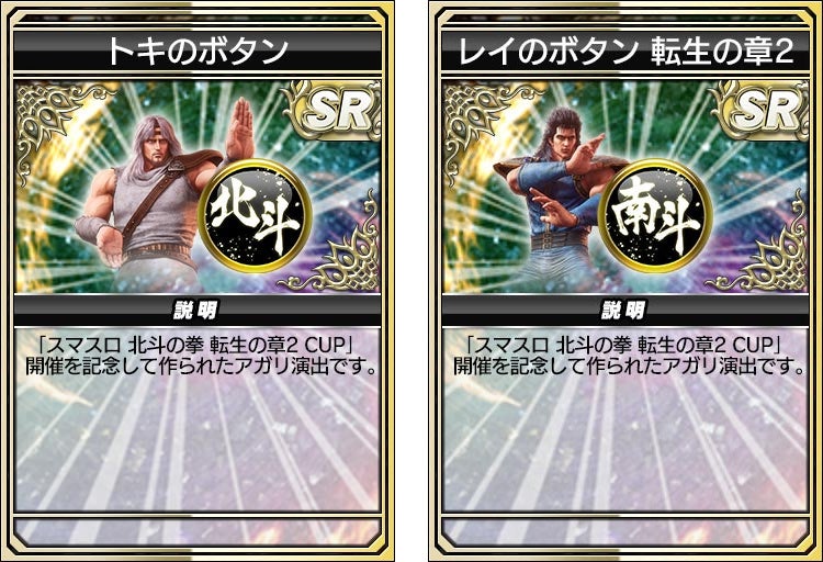 「ケンシロウ 転生の章2」「ラオウ 転生の章2」など、全5種の進化型SPキャラ(SSR)が登場します。