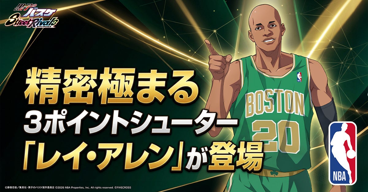 株式会社ファイブクロスは、アニメ『黒子のバスケ』の3Dバスケゲーム『黒子のバスケ Street Rivals』(黒バスSR)において、NBAレジェンド選手「レイ・アレン(SG)」が登場する期間限定イベントを開始したことを発表いたします。