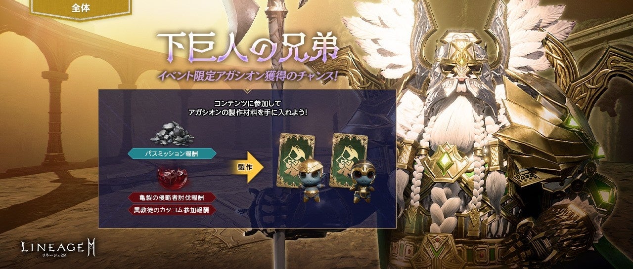 期間中、亀裂の侵略者やオリンピアード「異教徒のカタコム」への参加、パーティ ダンジョンの成功などで、ミッションを達成できるシーズン パス「レッサー ジャイアント ツインズ」のミッション達成報酬や、レベル報酬から、イベント アイテム「巨人の欠片(イベント)」と「巨人の破片(イベント)」を獲得できます。