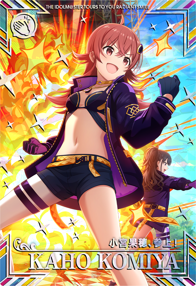また、第5弾注目の「小宮果穂/小宮果穂、参上!」・「紫雲清夏/ Campus mode!!」をはじめとする『アイドルマスター TOURS』オリジナルの描き下ろしイラストのカード90種の払い出しを開始します。