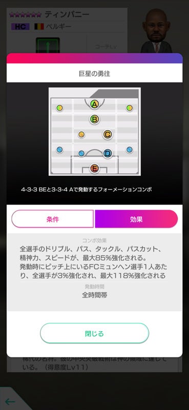 該当の選手を編成すると強くなるフォーメーションコンボ「巨星の勇往」と、戦術得意度Lv11を持つ新★6監督「ティンパニー」が登場!