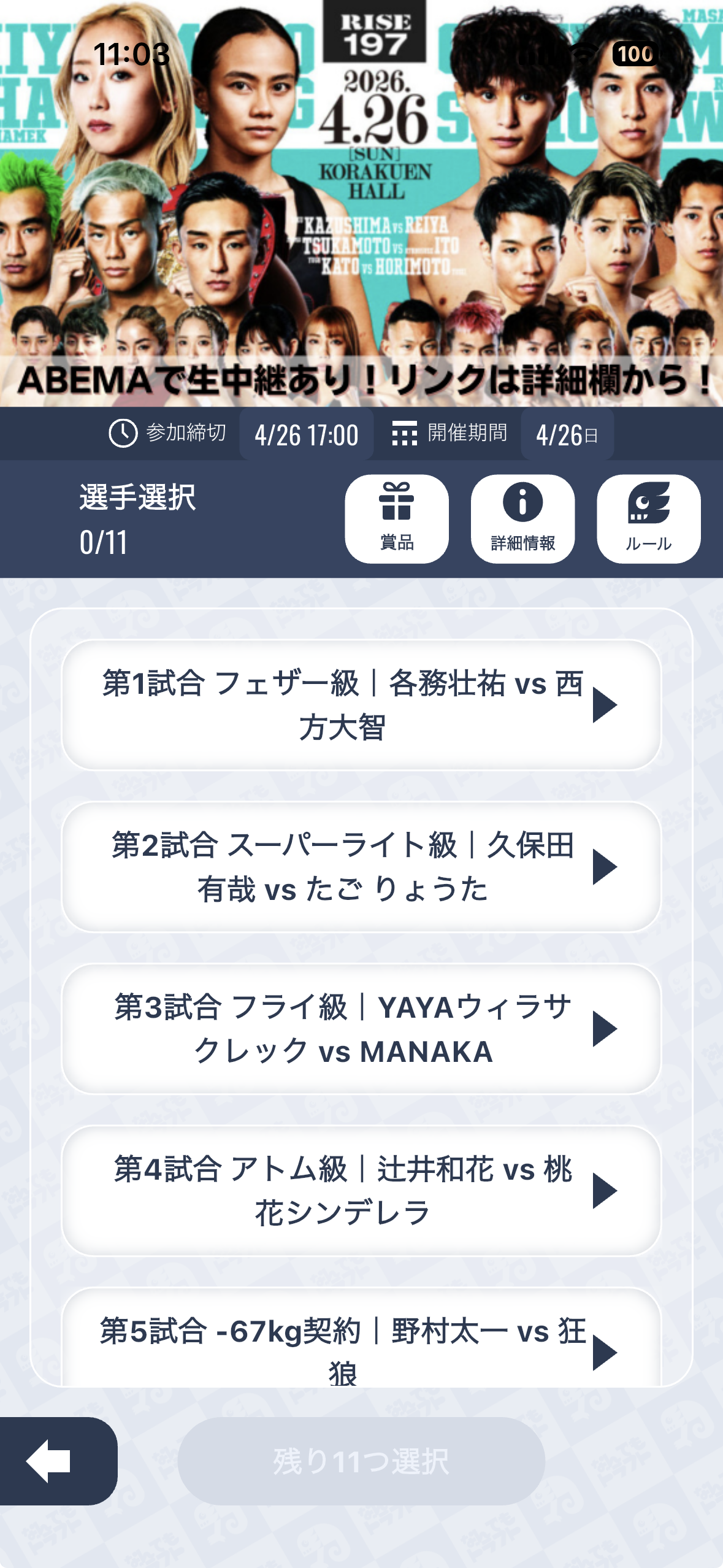 スポーツ予想アプリ「なんドラ」では、今週末に開催される『RISE197』をよりお楽しみいただくため、全11試合を対象とした予想企画を開催中です!
