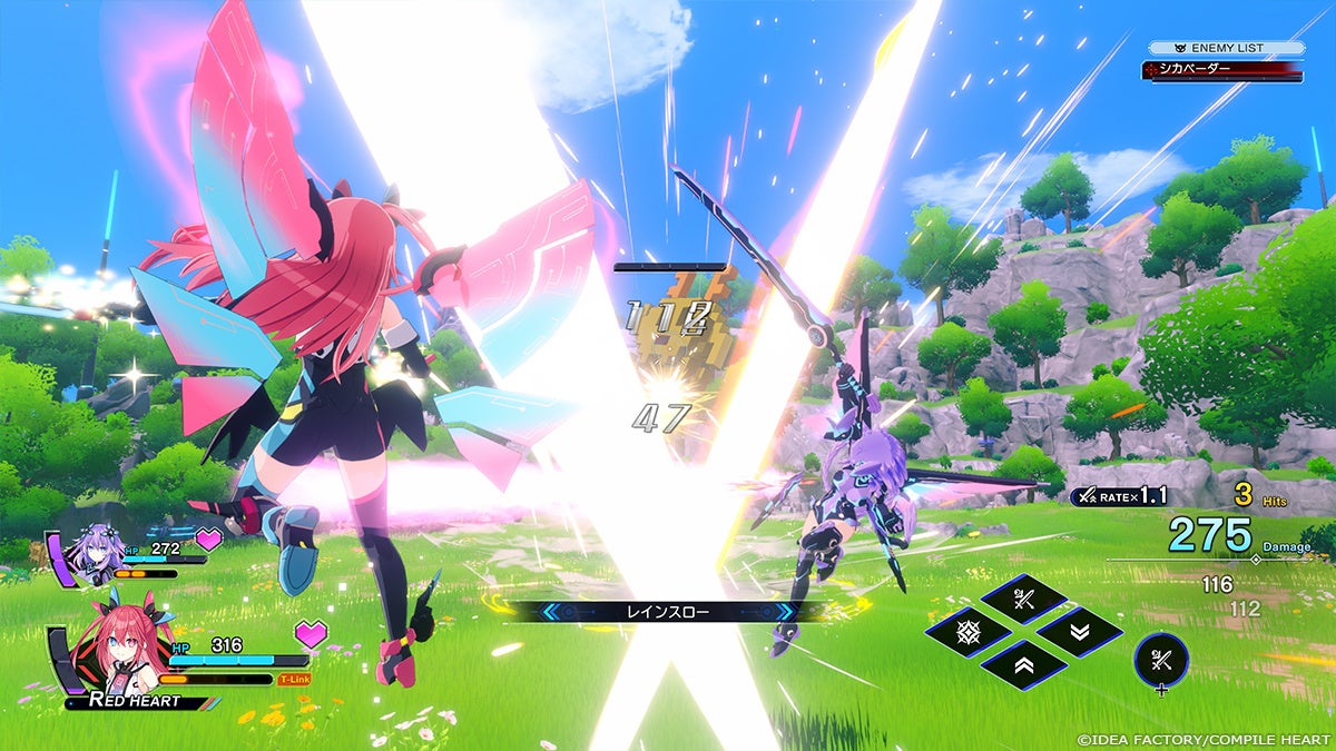今作は女神化した状態での戦闘を基本とした、女神化主体のバトルシステムとなっています。戦闘開始から女神化の圧倒的な力を発揮して敵を倒す、スピード感溢れた迫力あるバトルを楽しむことができます。