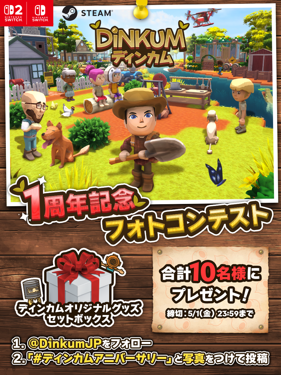 Steam版正式リリースから1周年ならびにNintendo Switch™ 2用ソフト(デジタル版)発売を記念して、『Dinkum(ディンカム)』の公式Xアカウントにてキャンペーンを開催中です。