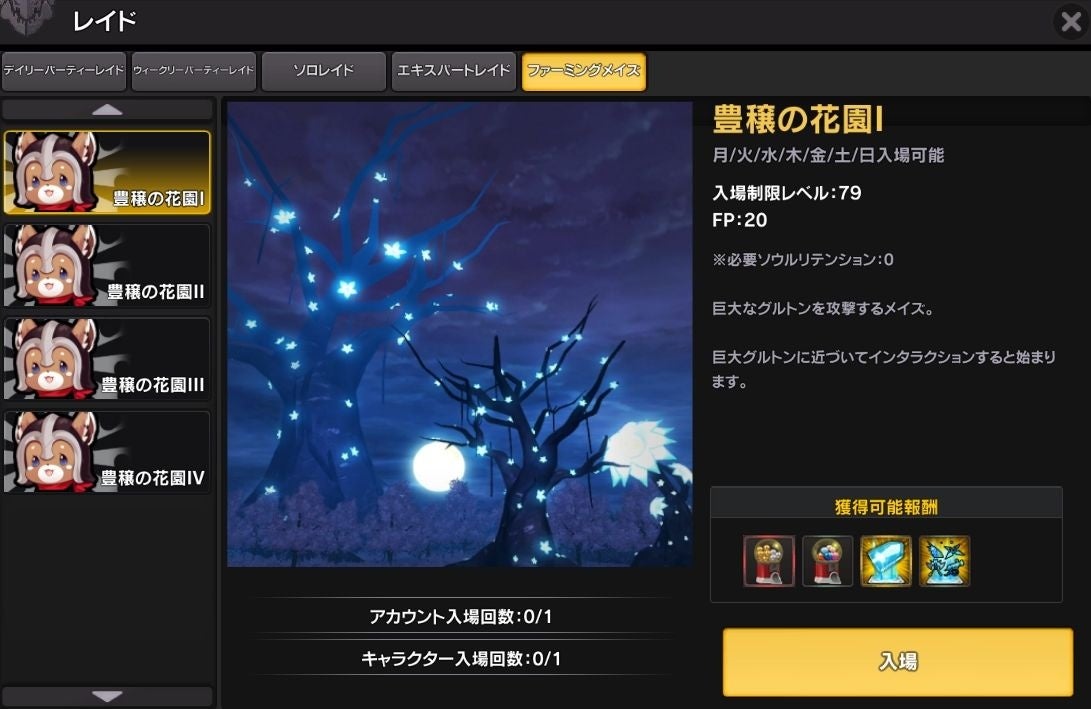 段階制構造(I〜IV)を持つファーミングメイズ「豊穣の花園」を追加いたしました。