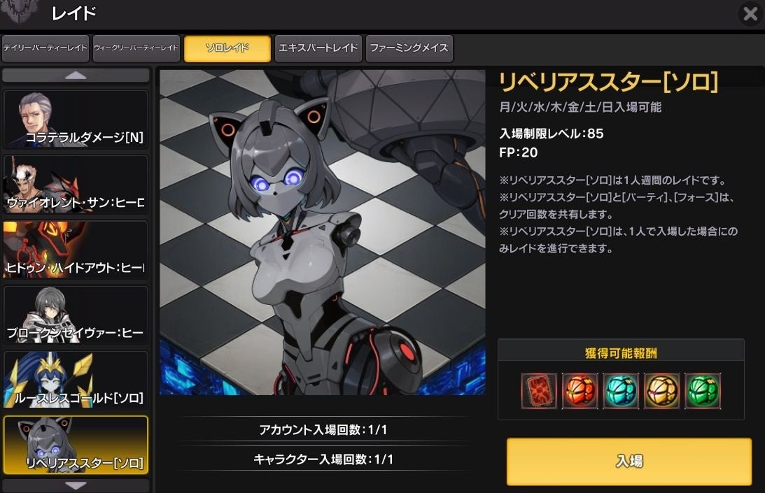レイドUIから入場可能で、1日1回の制限のもと効率的な素材収集が可能です。