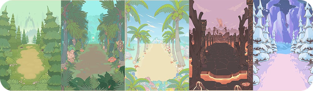 柔らかな色彩と躍動感のあるラインで描かれた手書きの世界は、まるで1枚の挿し絵が呼吸しているかのよう。プレイするだけで日々の疲れを癒やし、プレイヤーを優しい童話の世界へと誘います。