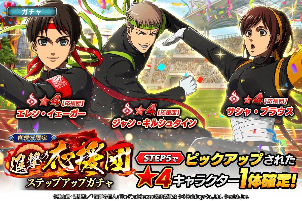 ・青輝石限定の「進撃の応援団ステップアップガチャ」では