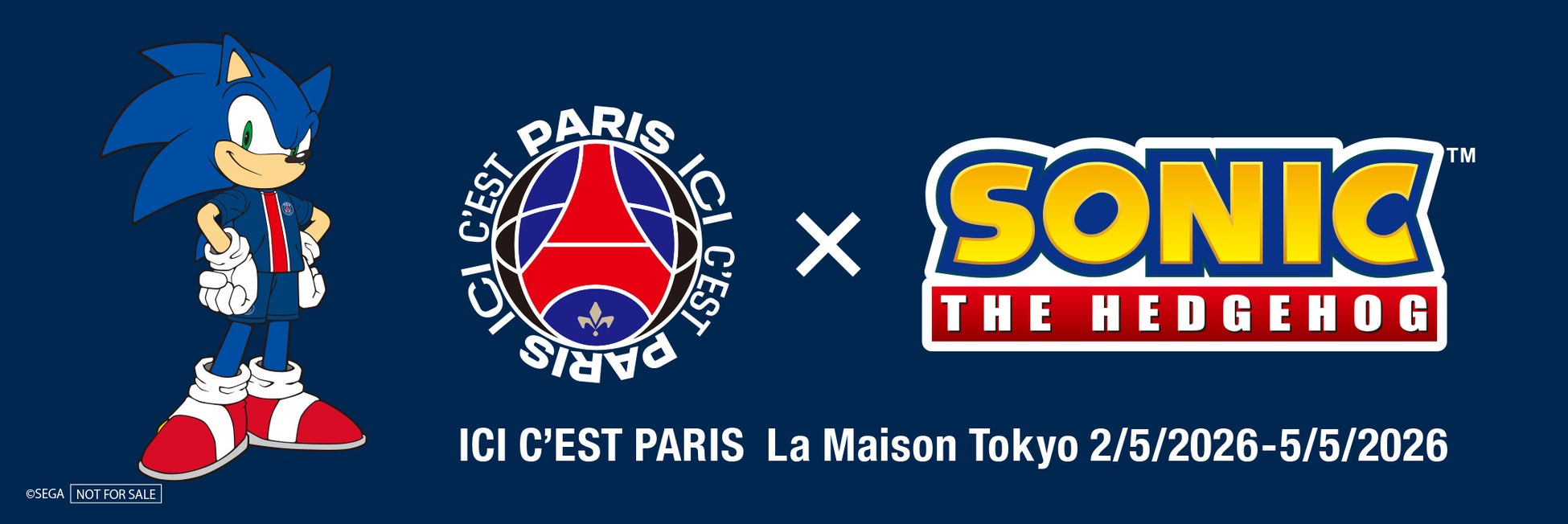 株式会社セガは、グローバルサッカークラブ「パリ・サン=ジェルマン(以下、PSG)」が2026年5月2日(土)より東京・渋谷にて開催する没入型ポップアップイベント「ICI C’EST PARIS La Maison Tokyo(イシ・セ・パリ・ラ・メゾン・トーキョー)」に、「ソニック・ザ・ヘッジホッグ」が参加することをお知らせいたします。