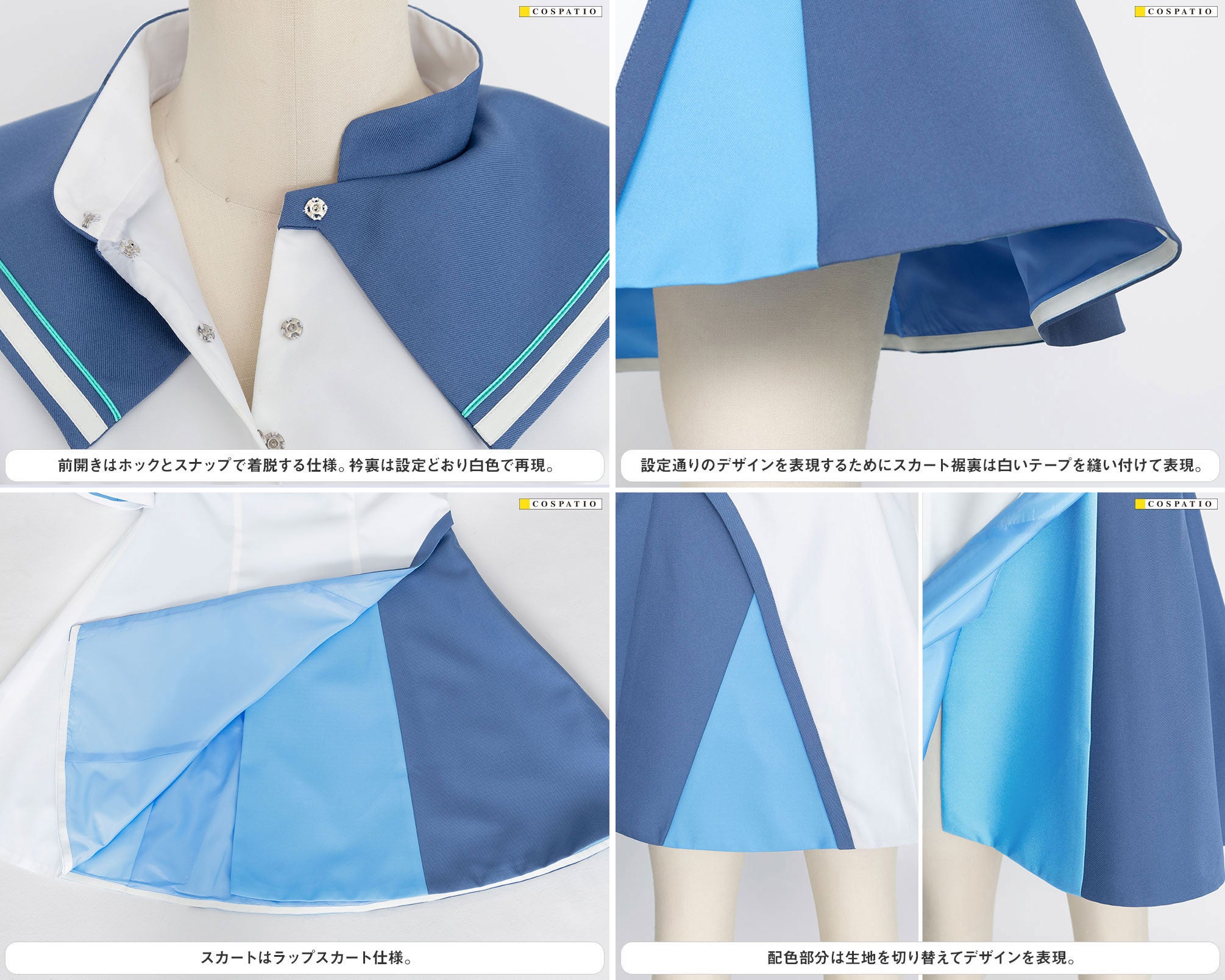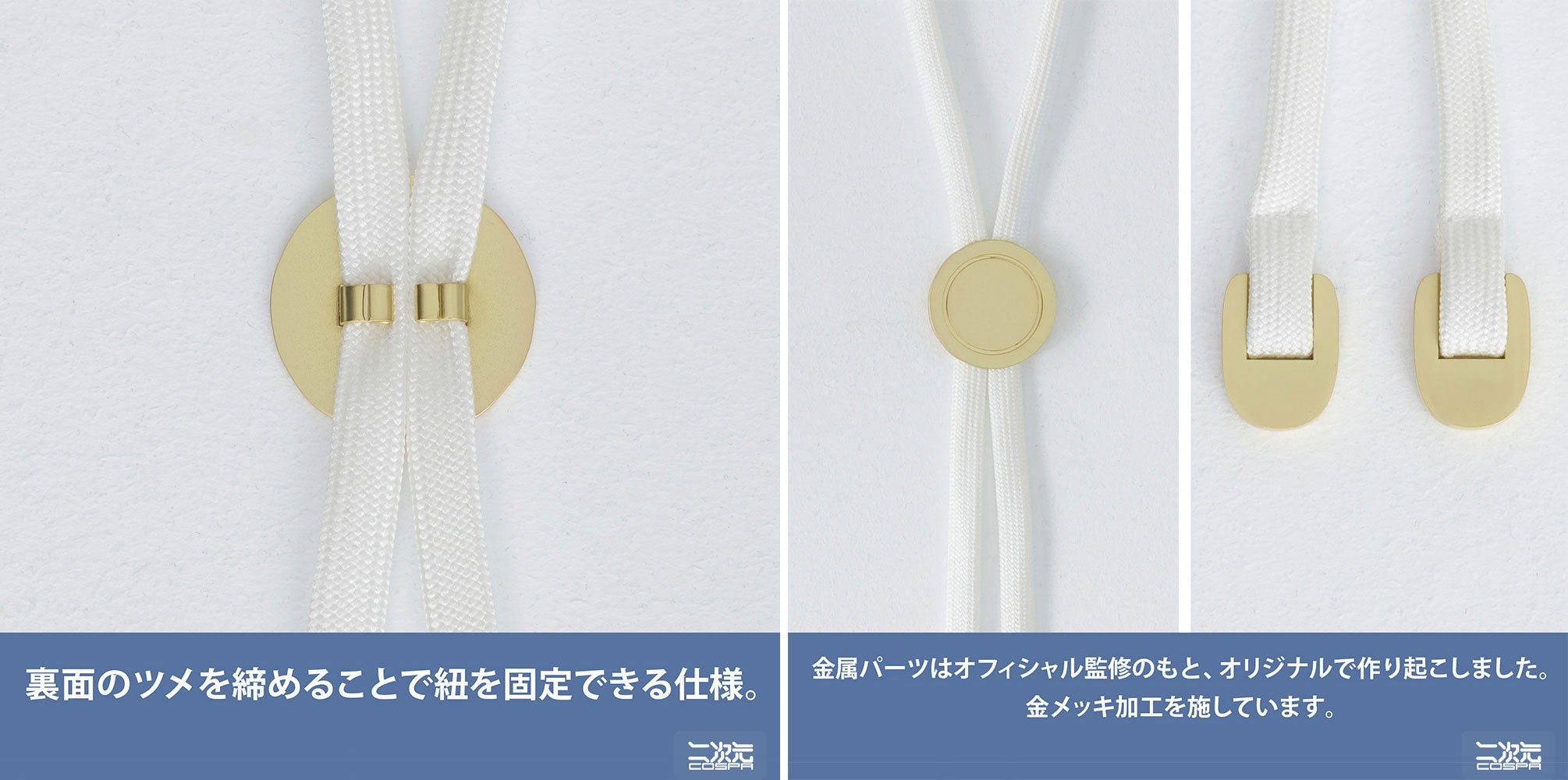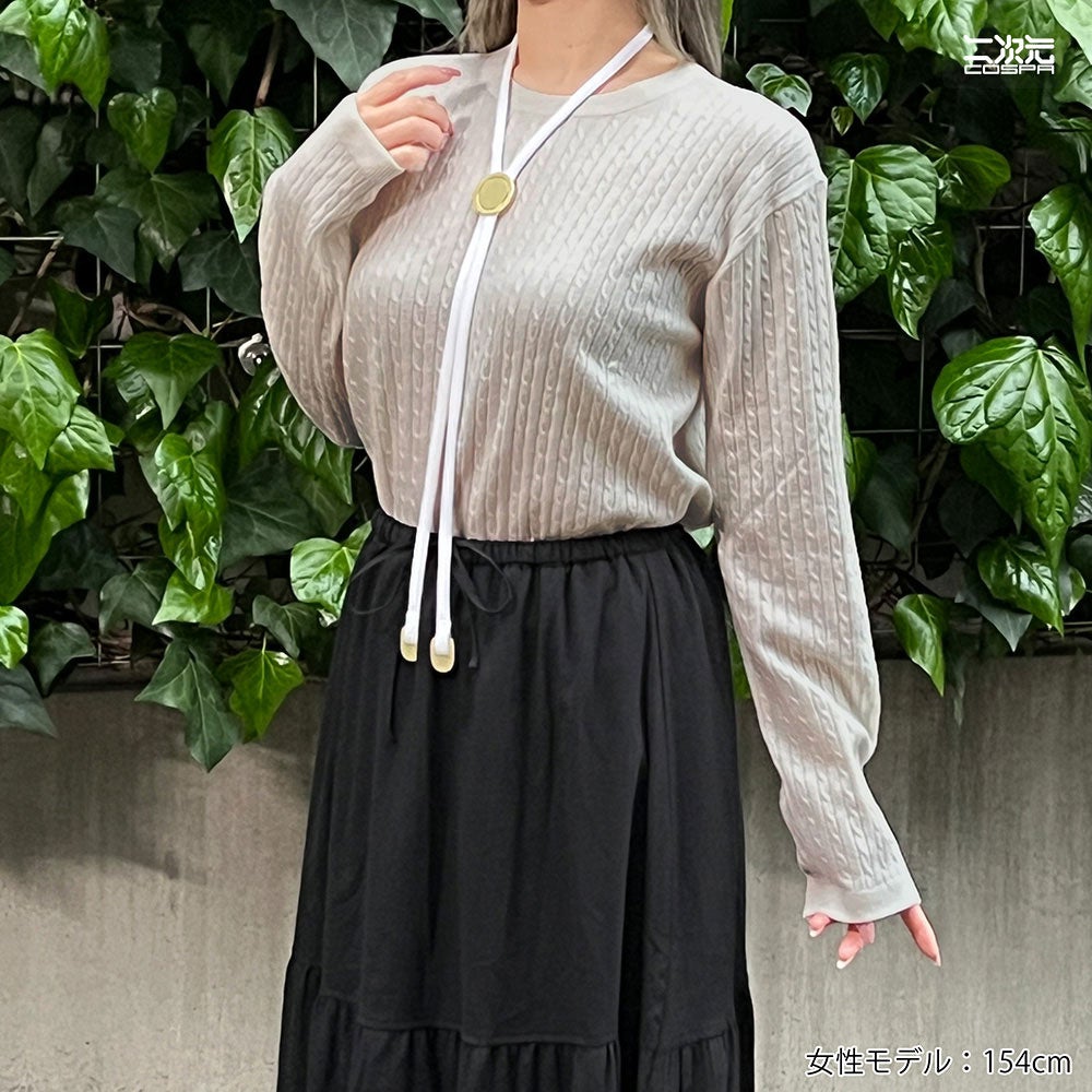 公式設定をもとに女子制服のシルエットや構造を再現することはもちろん、印象的な紺色の生地を染め上げるなどオフィシャル監修のもと忠実に再現。女子制服 ループタイについても、金属パーツをオリジナルで作り起こすことでしっかりと存在があり、金メッキ加工を施すことで高級感ある仕上がりになりました。コスプレ以外にも普段着に合わせてもご使用いただけます。