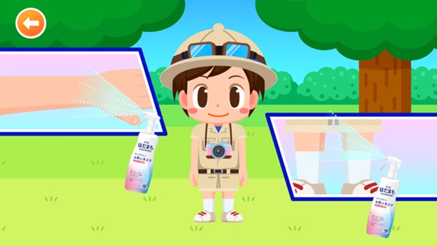 お肌へのやさしさと虫への効きめを追求したミストタイプの虫よけ剤『はだまも』を使用した探検ゲームです。お出かけ前に『はだまも』を肌にスプレーすることで、蚊などを気にせず森の中を探索できます。様々な生き物をカメラで撮影し、自分だけのオリジナルアルバムを作って楽しむことができます。