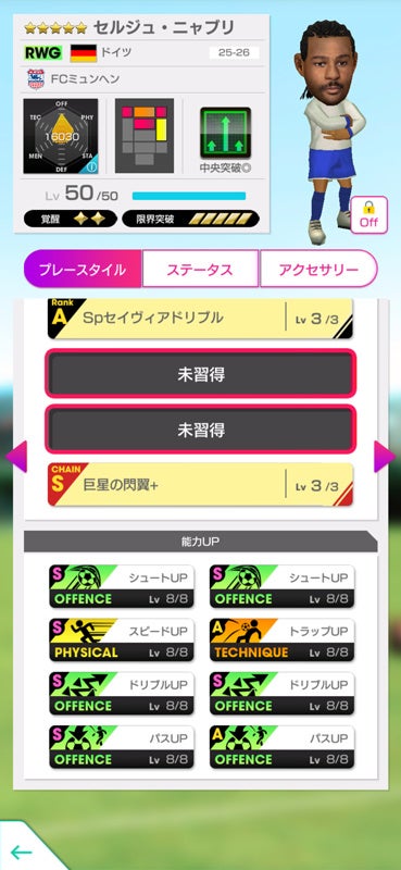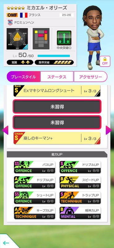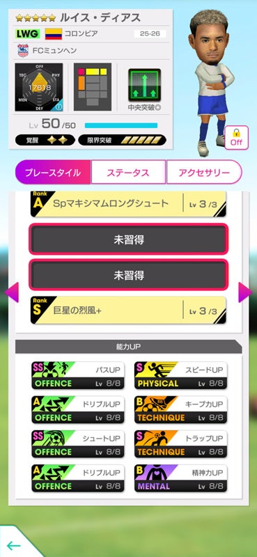 また、難易度「ベリーハード」の各ステージでは、選手の能力をアップさせるアクセサリーが入手できます。最終ステージではFCバイエルン・ミュンヘンとコラボした「バイエルン」の虹アクセサリーが登場! 過去に登場したワールドツアー限定の虹アクセサリー「金糸雀」「伝統」も再登場します。