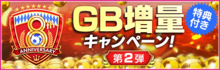 “8th Anniversary GB増量キャンペーン第2弾”を開催中です。GBショップで指定のGBセットを購入すると、特典としてGB増量やアイテムが付いてくるお得なキャンペーンです。