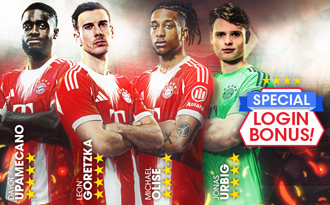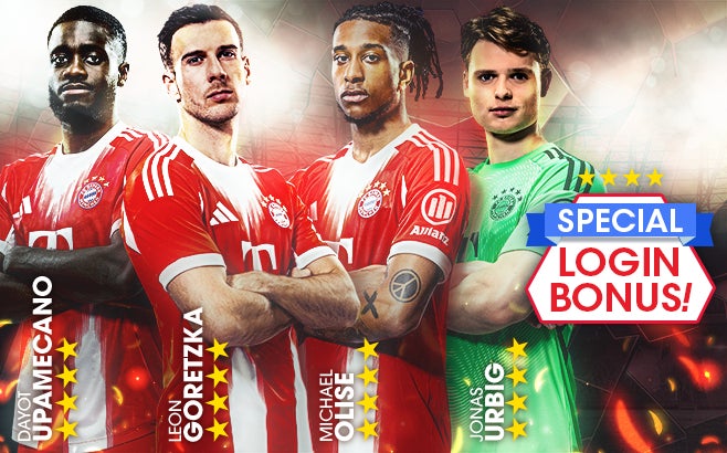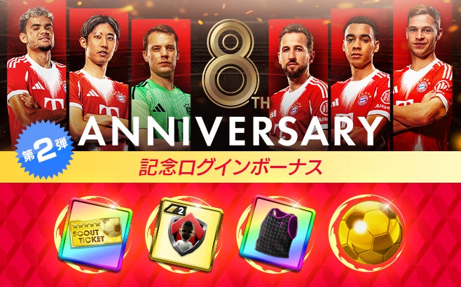 「ルイス・ディアス」「セルジュ・ニャブリ」「ミカエル・オリーズ」「レオン・ゴレツカ」「伊藤洋輝」「ダヨ・ウパメカノ」「ヨナス・ウルビヒ」といったFCバイエルン・ミュンヘンのスーパースターが、得意戦術中央突破の新★5選手として登場する“8th Anniversary SUPER STAR FES”を開催!★4バージョンの選手たちがもらえる“スペシャルログインボーナス”も実施します。