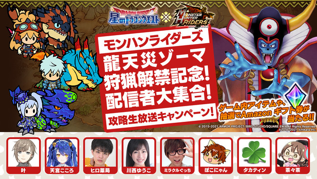 「大魔王ゾーマ」の狩猟解禁を記念して、「龍天災ゾーマ狩猟解禁記念!配信者大集合!攻略生放送キャンペーン!」を開催。
